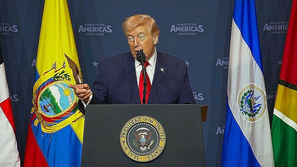 US-Präsident Donald Trump empfing in Doral im US-Bundesstaat Florida beim „Shield of the Americas“-Gipfel lateinamerikanische Staatschefs. Während seiner Rede erklärte er unverblümt, dass er keine Zeit habe, ihre „verdammte Sprache" zu lernen, und forderte stattdessen gute Dolmetscher.