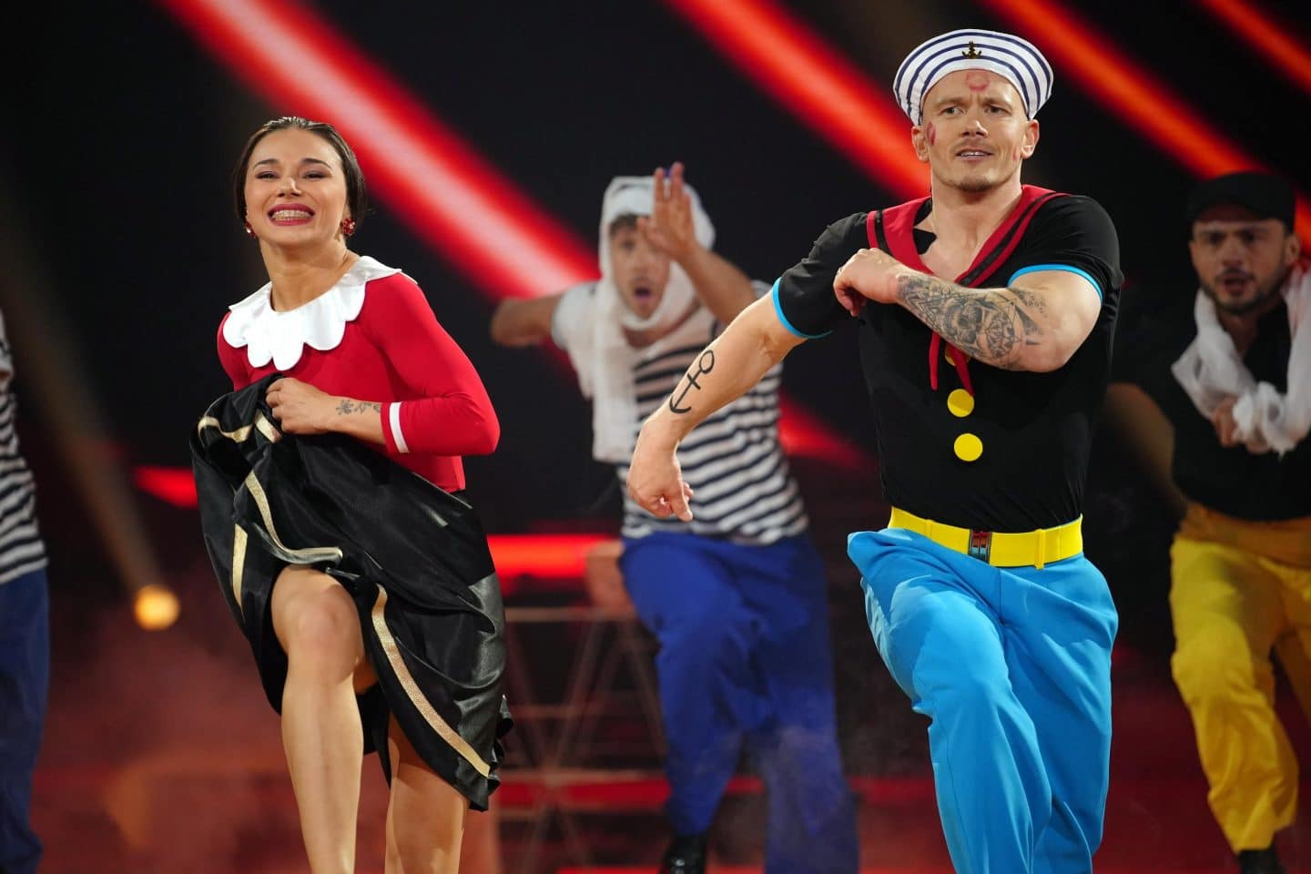 Fabian Hambüchen und Anastasia Maruster mit ihrem Final-Freestyle: Popeye +++ Die Verwendung des sendungsbezogenen Materials ist nur mit dem Hinweis und Verlinkung auf RTL+ gestattet. +++