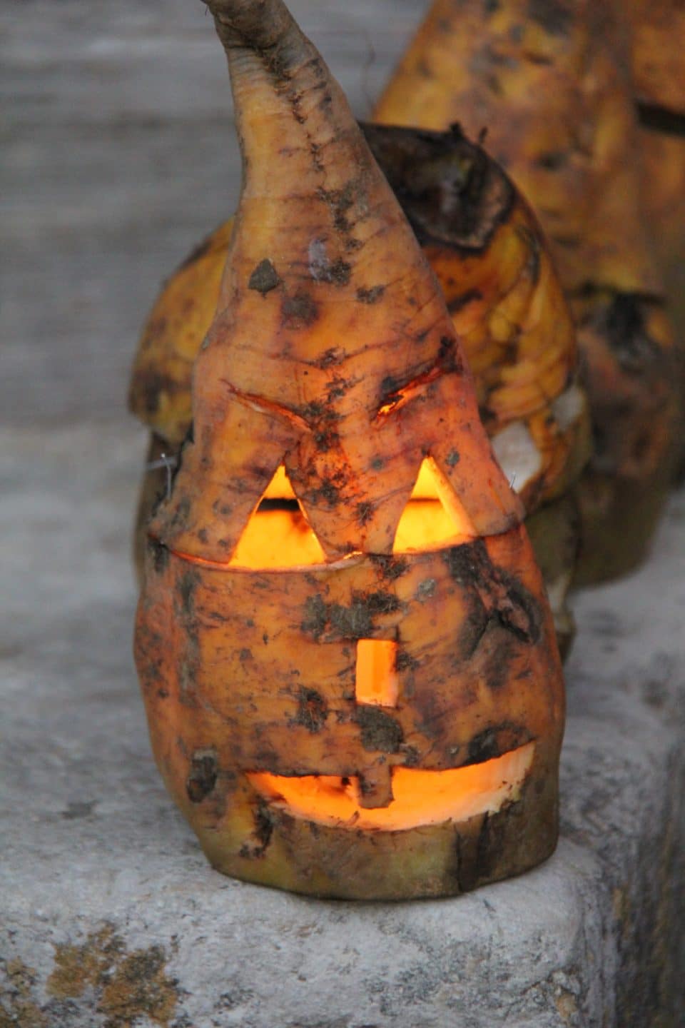 Wie in den USA die Kürbisse, so werden an Allerheiligen hierzulande Futterüben von den Kindern ausgehöhlt und mit einem fratzenartigen Gesicht versehen, um sie dann nach altem Volksbrauch beleuchtet ins Fenster zu stellen oder durch die Straßen zu tragen.