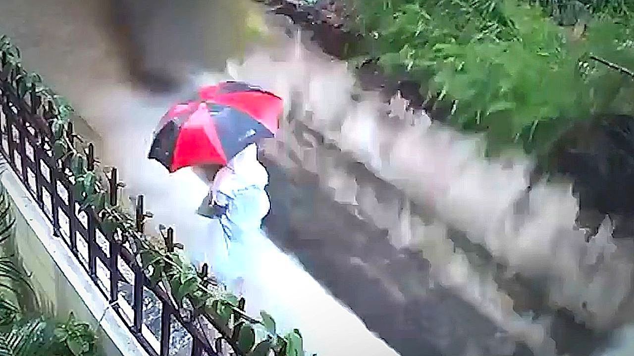 In Ranchi im indischen Bundesstaat Jharkhand lief eine Frau eine Gasse entlang – plötzlich brach eine Mauer neben ihr zusammen. Die Passantin hatte einen Schutzengel.