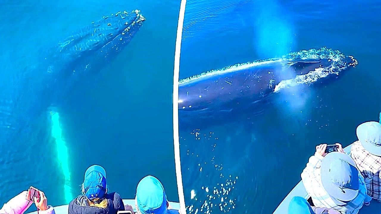 In Morro Bay im US-Bundesstaat Kalifornien erlebten Touristen ein unvergessliches Naturschauspiel: Buckelwale tauchten direkt neben ihrem Boot auf – einer der Meeresriesen begrüßte die Besucher mit einer Wasserfontäne.