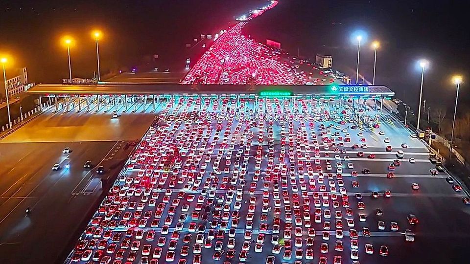 Totales Chaos an Chinas größter Mautstelle: Tausende Fahrzeuge blockierten die Autobahn, Auslöser war die massive Rückreisewelle nach dem Neujahrsfest.