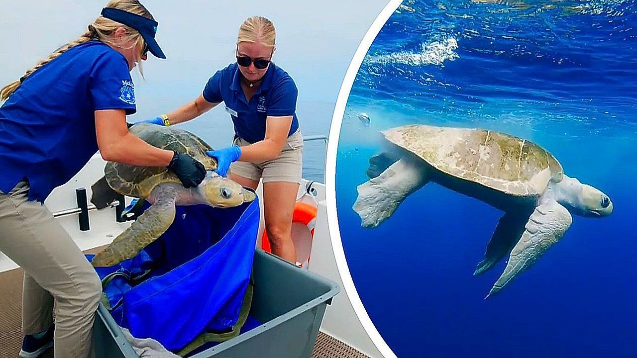 Am Pismo Beach im US-Bundesstaat Kalifornien wurde im vergangenen Dezember eine Oliv-Bastardschildkröte in einem desolaten Zustand gefunden. Monatelang wurde das Reptil aufgepäppelt, jetzt ging es zurück ins Meer.