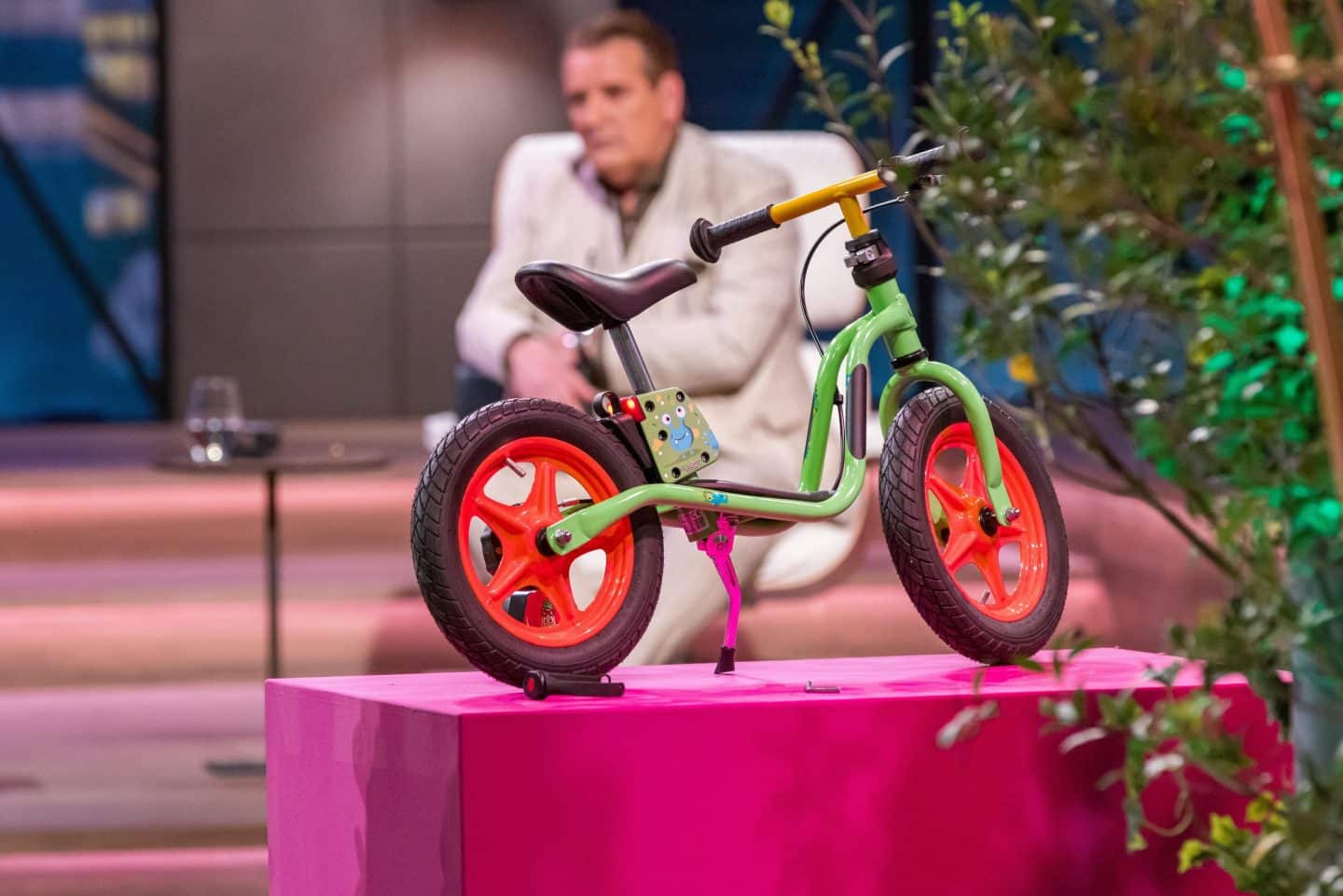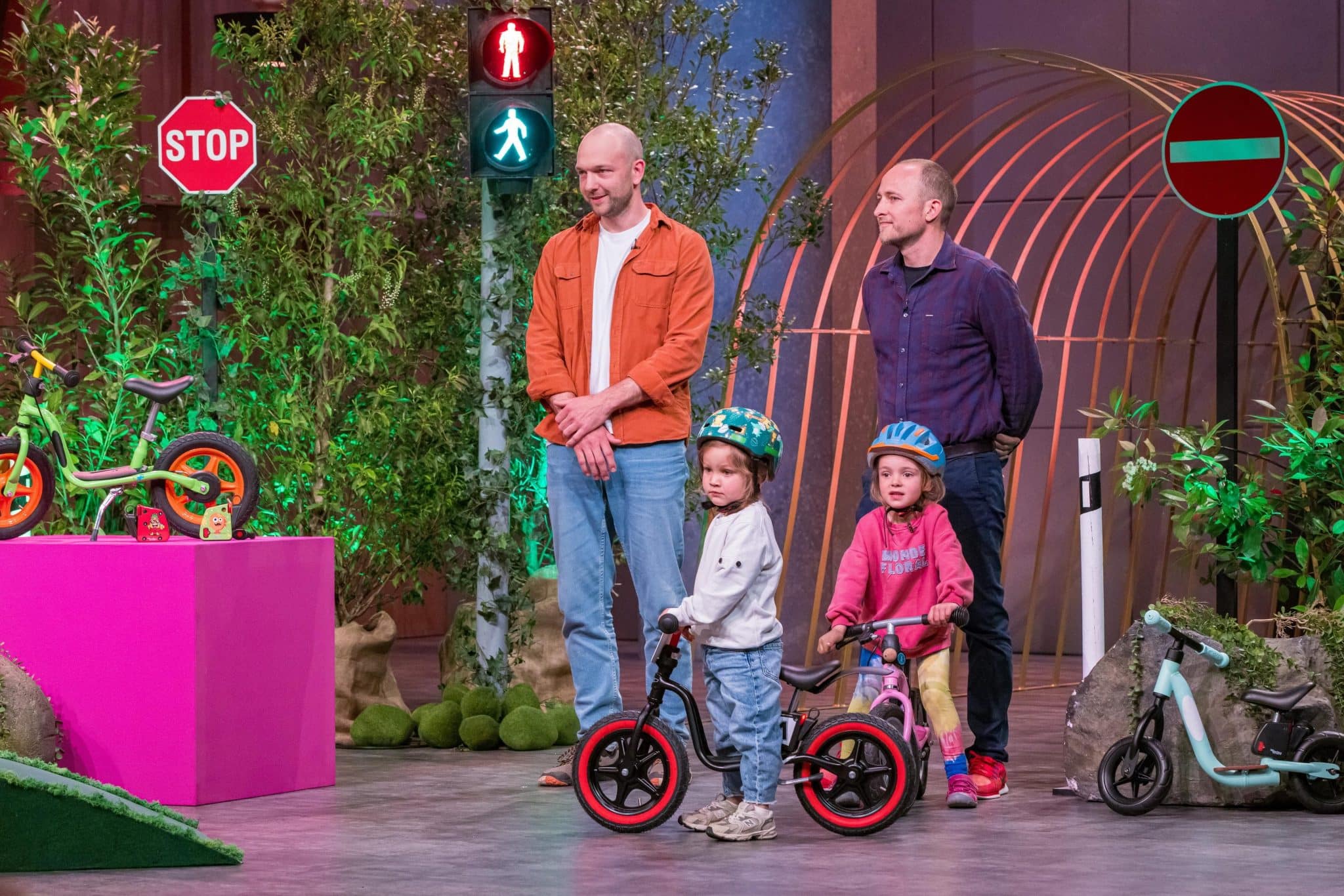 Beim Pitch im Studio demonstrieren zwei Kinder auf Laufrädern, wie schnell eine eigentlich harmlose Situation zur Gefahr werden kann. Dann greifen die Gründer ein – per Funkbremse. Das Rad stoppt kontrolliert. Die Investoren staunen.