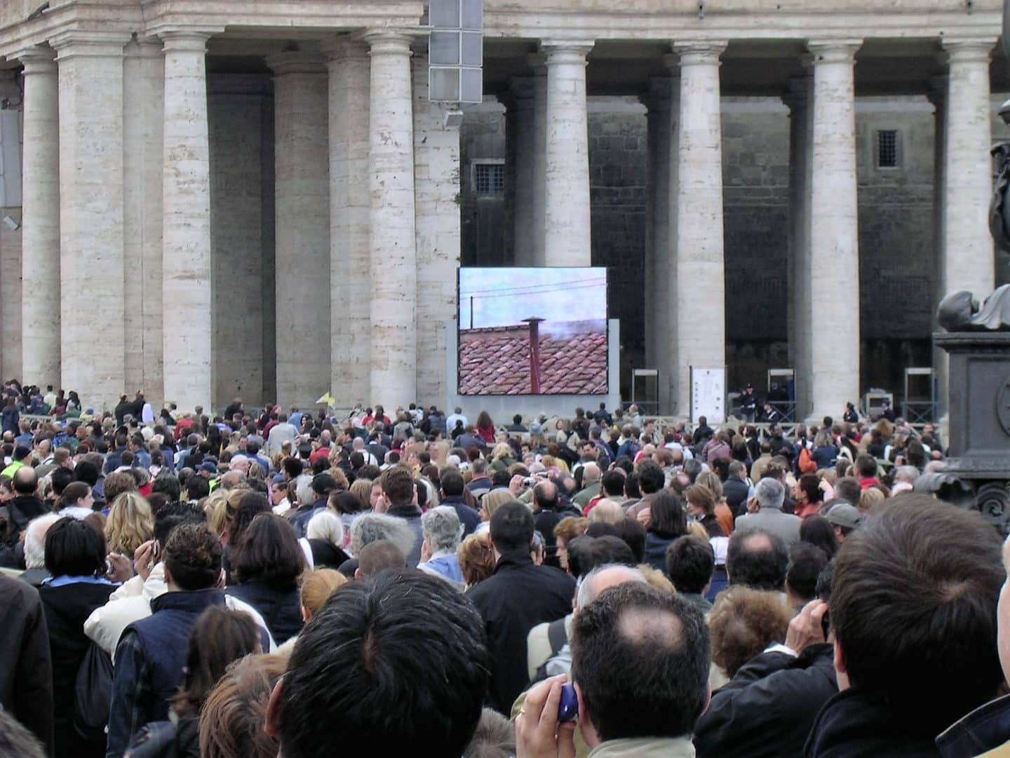 Wenn weißer Rauch aus dem Schornstein der Sixtinischen Kapelle aufsteigt und die Glocken des Petersdoms läuten (eine seit der Wahl Benedikts XVI. übliche zusätzliche Bestätigung ), ist ein neuer Papst gewählt. Kurz darauf tritt der Kardinalprotodiakon auf die Benediktionsloggia des Petersdoms und verkündet der wartenden Menge und der Weltöffentlichkeit die lateinische Formel : „ANNUNTIO VOBIS GAUDIUM MAGNUM: HABEMUS PAPAM!“ (Ich verkünde euch eine große Freude: Wir haben einen Papst!).