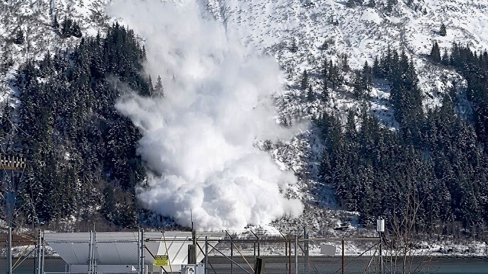 Dramatische Aufnahmen an einem steilen Hang in Alaska: Eine massive Lawine donnerte am Dienstag einen Berg hinab, die Thane Road in Juneau war wegen der großen Gefahr bereits Stunden zuvor gesperrt worden.