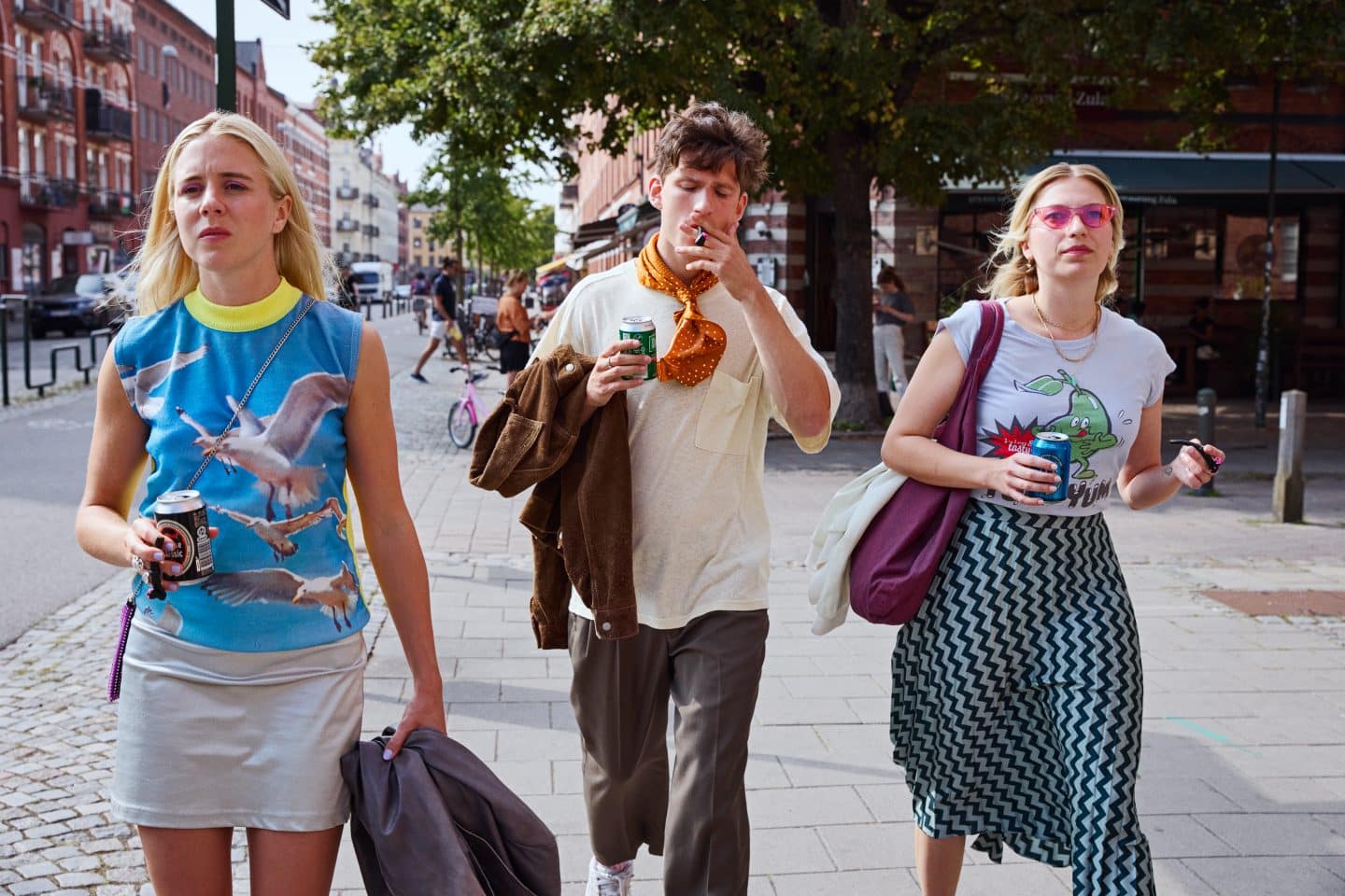 Halva Malmö. (L to R) Carla Sehn as Amanda, Isac Calmroth as Filip, Moah Madsen as Adina in Halva Malmö. Cr. Courtesy of Netflix © 2024