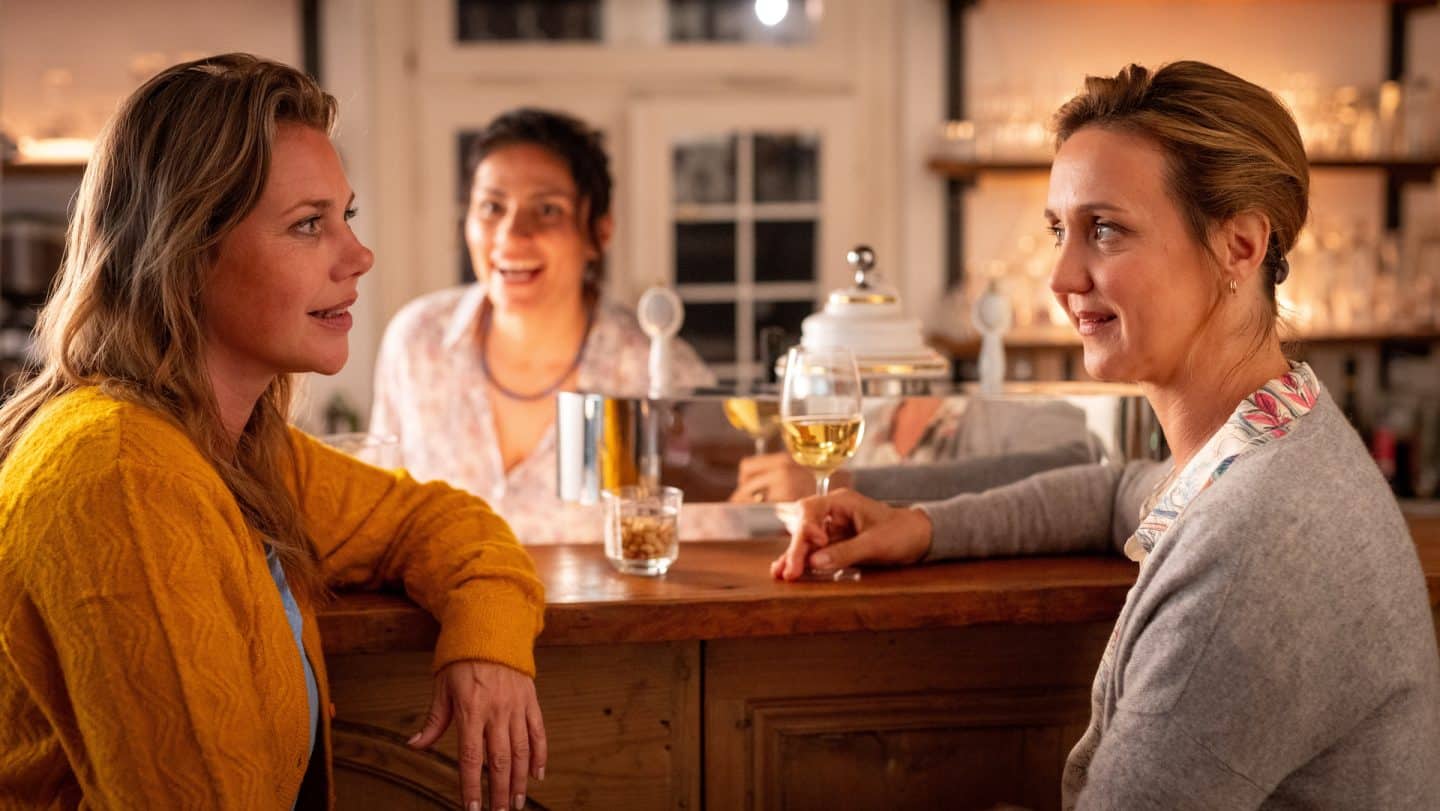 Seit dem plötzlichen Wiedersehen mit ihrem Ex-Mann zweifelt Beke Rieper (Felicitas Woll, l.) ob sie tatsächlich so ganz und gar über David hinweg ist. Und dann ist da noch Elif Baskan (Halima Ilter, M.), gute Freundin und zugleich die Ex von Paul. Wo ist da ihr Platz? Indes kämpft ihre Schwester Heide Schulze (Anne Roemeth, r.) schwer damit, dass sie die Wahl als Bürgermeisterin von Jork verloren hat. All das kommt im Appelhus auf den Tisch.