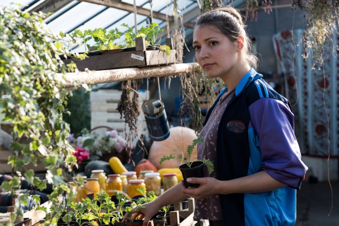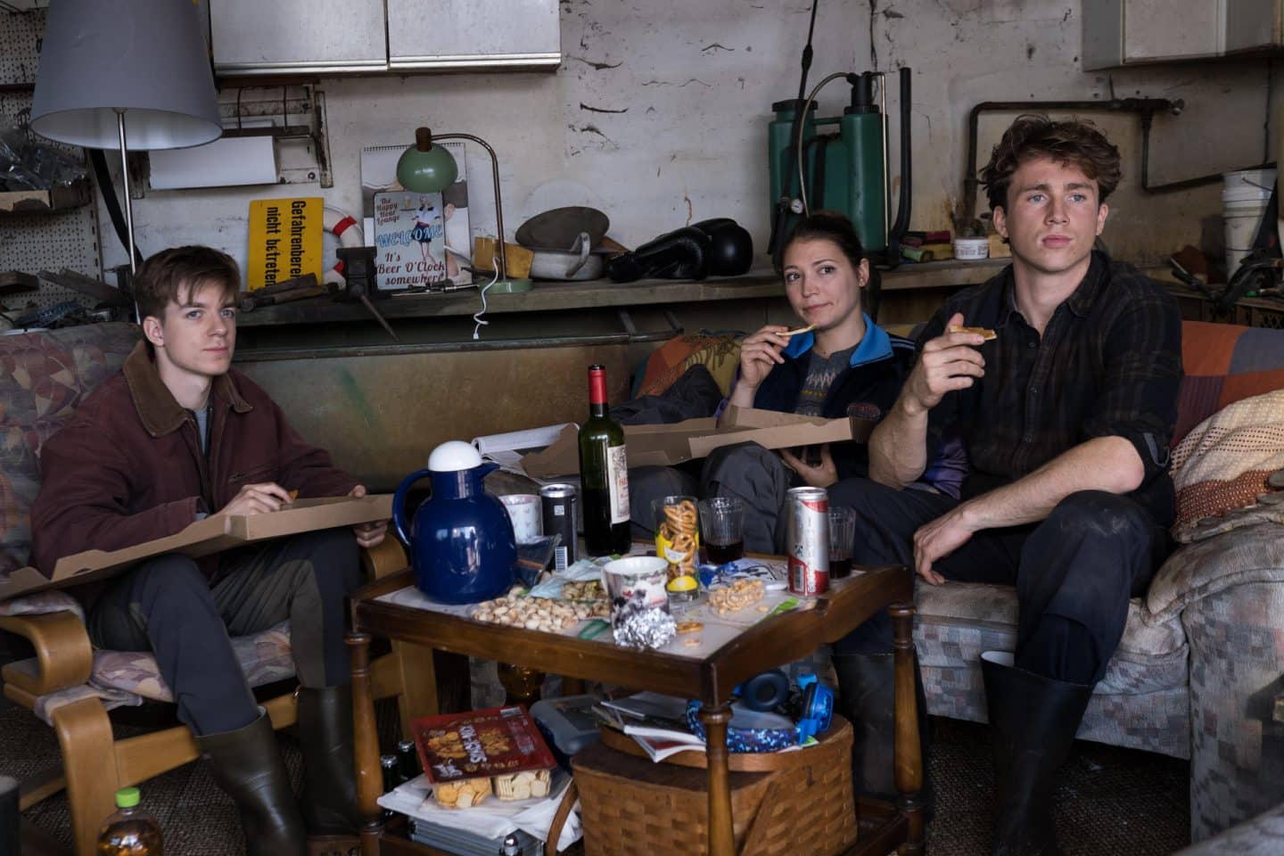 Das junge Gärtnerteam, Maria Inonesco (Irina Potapenko, M.), Lasse Möller (Justus Johanssen, r.) und sein Bruder Rico (Nick Julius Schuck, l.) geht ziemlich entspannt mit den Fragen der Sylter Kommissare zum Mord an ihrem Auftraggeber Friedel Tanner um.