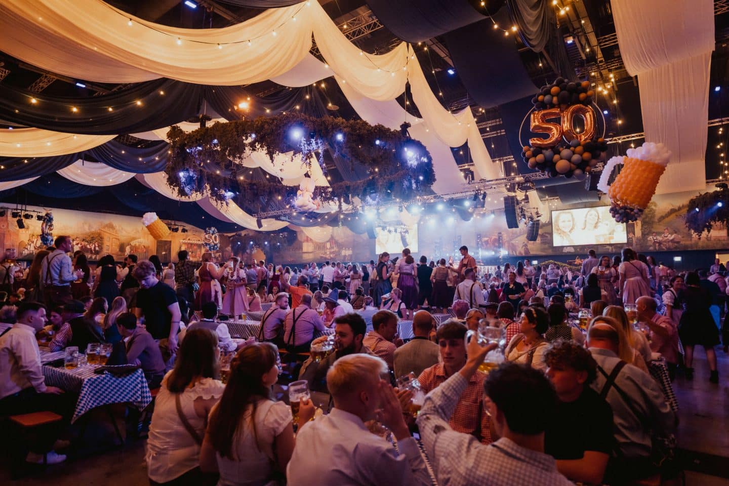 Ob knusprige Hendl, deftige Hax’n oder frische Brez’n – kulinarisch stand alles im Zeichen bayerischer Schmankerl. Dazu floss die frisch gezapfte Maß in Strömen. Im vollbesetzten Festzelt herrschte beste Laune: Es wurde geschunkelt, getanzt und gefeiert, bis die Bänke bebten.