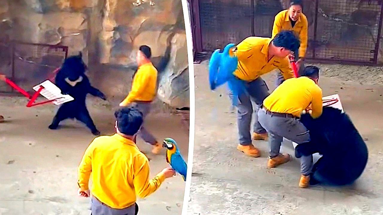 Im chinesischen Hangzhou nahm eine Bären-Show in einem Tierpark eine beängstigende Wendung: Ein Schwarzbär attackierte plötzlich seinen Trainer.