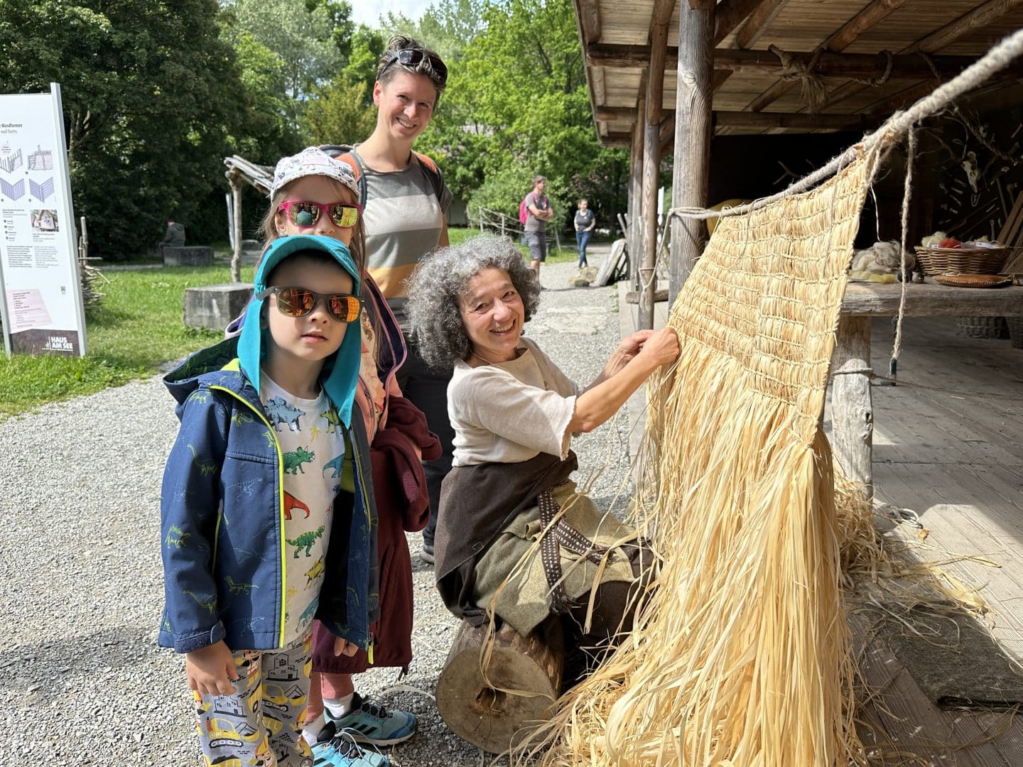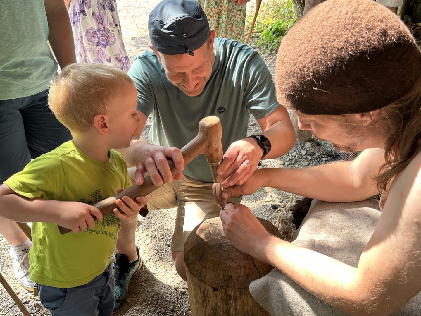 Auch abseits der Pfahlhäuser ist einiges geboten: Im „Steinzeit-Parcours“ gibt es ein kleines Freiluftkino mit lehrreichen Kurzfilmen, eine steinzeitliche Bohrmaschine, einen Barfußpfad, Klanghölzer und zahlreiche Mitmachstationen. Kinder wie Erwachsene erfahren spielerisch, wie sich das Leben in der Vorzeit anfühlte – vom Wohnen über die Kleidung bis hin zur Nahrungszubereitung.