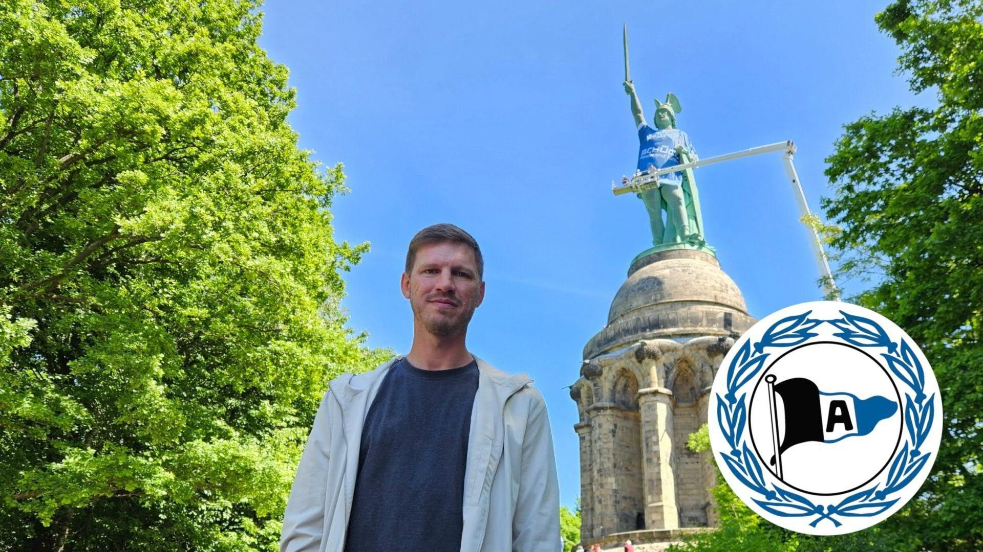 Was nach dem sensationellen Einzug von Arminia Bielefeld ins DFB-Pokalfinale als KI-Bild viral ging, ist nun Realität geworden: Das Hermannsdenkmal bei Detmold hat ein überdimensionales Trikot des Vereins bekommen.