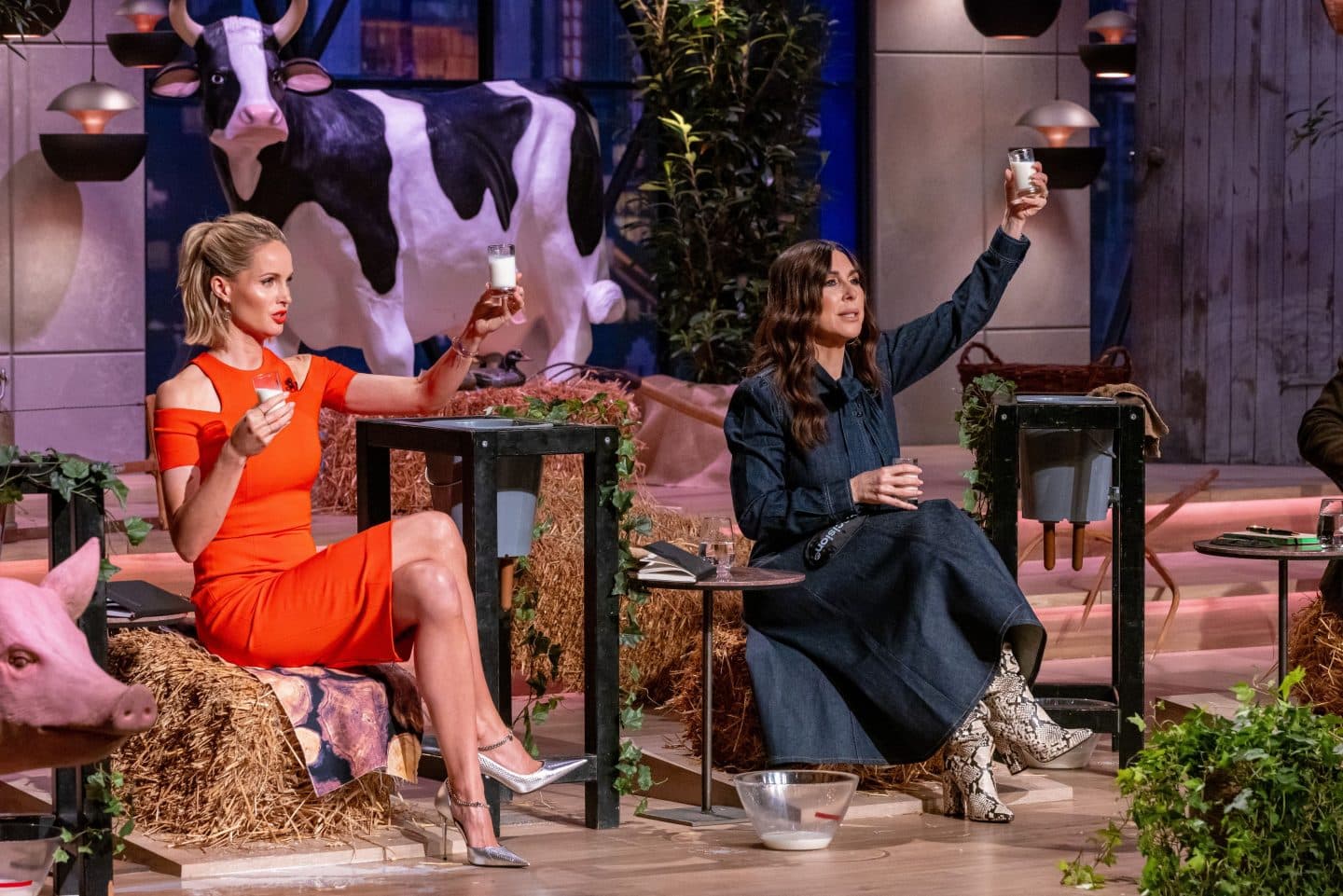 Die Investorinnen Janna Ensthaler (l.) und Judith Williams bei der Blindverkostung von Kuhmilch vs. Precision- Milch.+++ Die Verwendung des sendungsbezogenen Materials ist nur mit dem Hinweis und Verlinkung auf RTL+ gestattet. +++