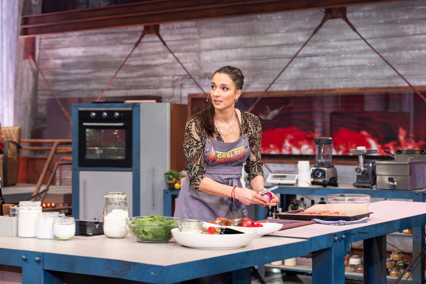 Food-Bloggerin Sally wagt sich an eine Vorspeise mit besonderer Würze: Mit Käse gefüllte Quarkbällchen mit pikantem Dip und Spinatsalat. Die Schärfe ihres Dips stellt sich jedoch als Herausforderung für Moderatorin Laura Wontorra heraus: „Ein bisschen scharf“, japst sie nach dem Probieren.