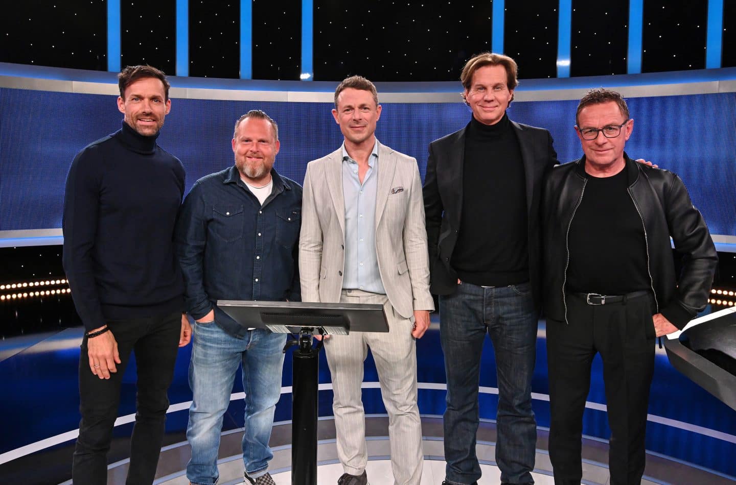 ARD/NDR GEFRAGT – GEJAGT, „Quiz-Marathon mit Alexander Bommes“, am Samstag (10.05.25) um 20:15 Uhr im ERSTEN. Moderator Alexander Bommes mit den Kandidaten: Sven Hannawald, Axel Stein, Thomas Heinze und Ralf Rangnick (v. l. n. r.). © NDR/ARD/Uwe Ernst, honorarfrei – Verwendung gemäß der AGB im engen inhaltlichen, redaktionellen Zusammenhang mit genannter NDR-Sendung bei Nennung „Bild: NDR/ARD/Uwe Ernst“ (S2+). NDR Presse und Information/Fotoredaktion, Tel: 040/4156-2333 oder -2305, [email protected]