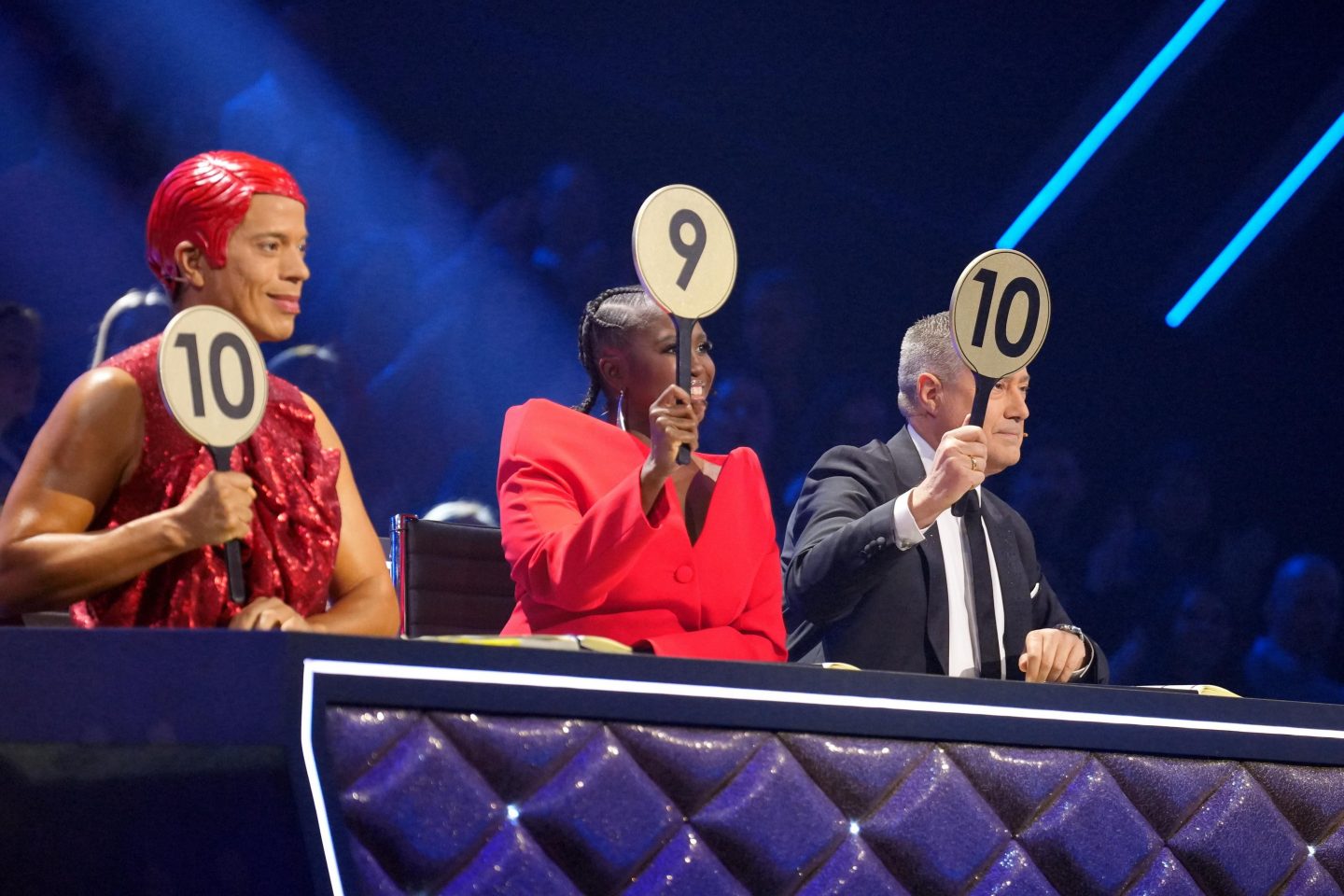 Die Jury mit Jorge González (l.), Motsi Mabuse und Joachim Llambi. +++ Die Verwendung des sendungsbezogenen Materials ist nur mit dem Hinweis und Verlinkung auf RTL+ gestattet. +++