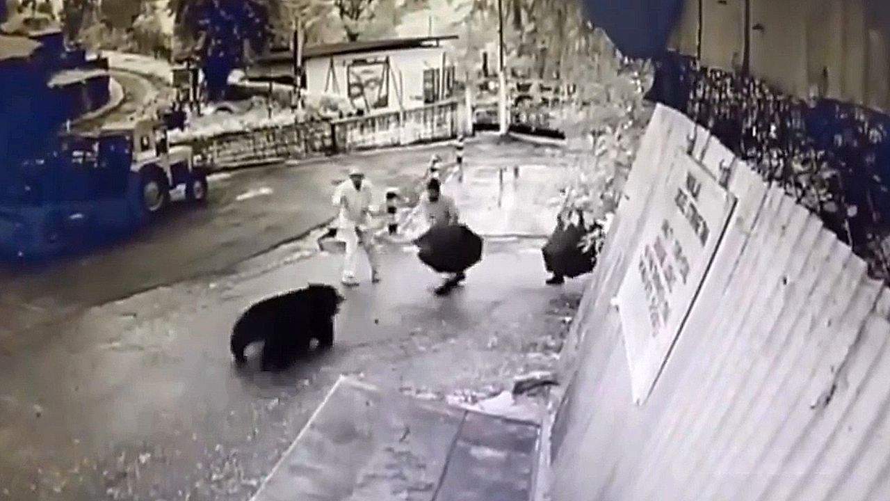 Im indischen Bundesstaat Tamil Nadu lief ein Mann durch den Regen, als er plötzlich von einem Bären attackiert wurde. Sein aufgespannter Regenschirm bewahrte den Passanten vor Schlimmerem.