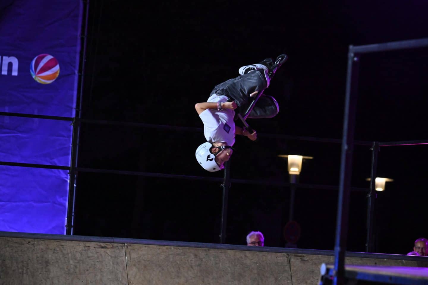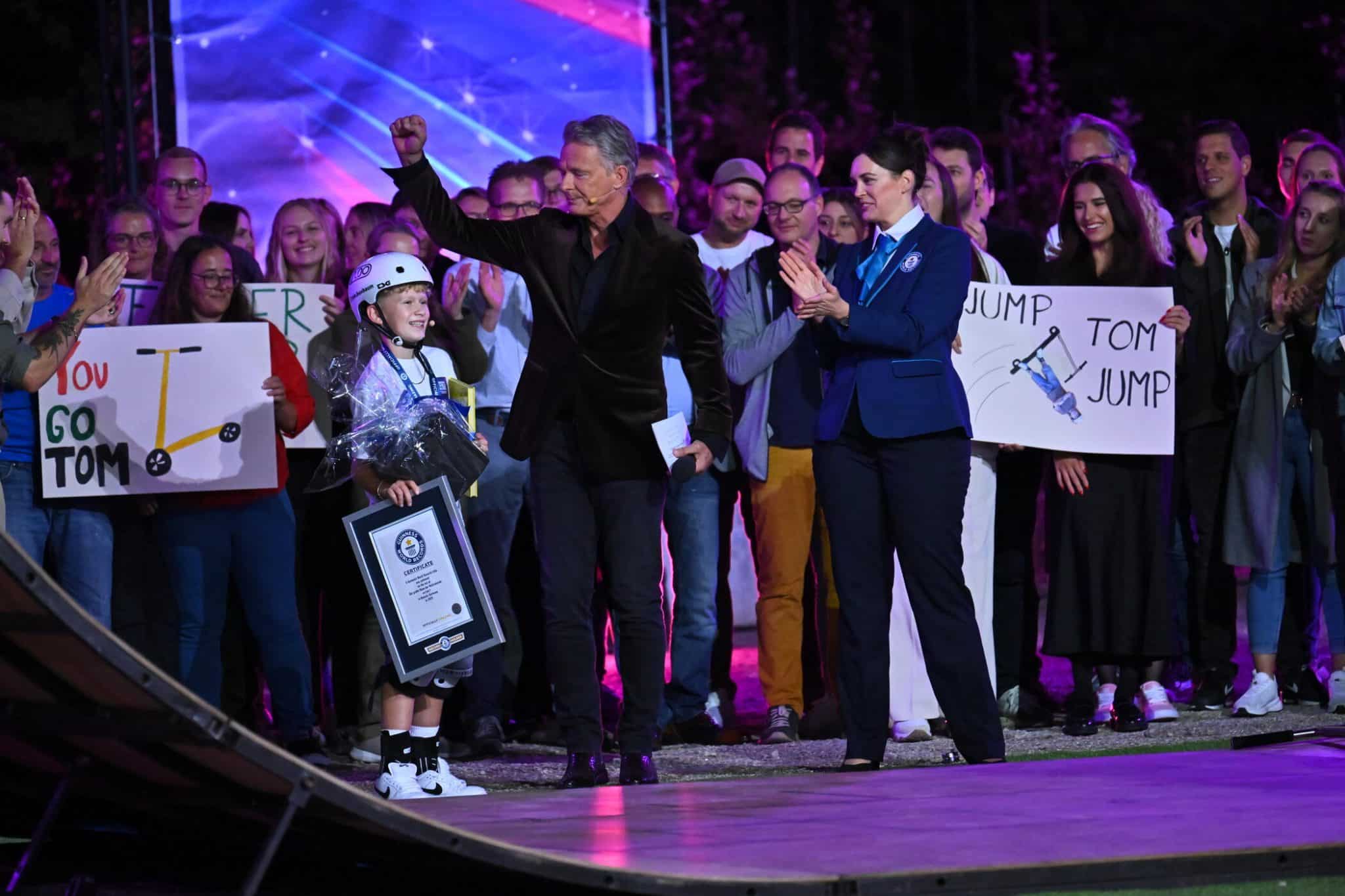 Mit gerade einmal 12 Jahren trat Tom Buxbaum aus Siegen an – und raste in die Rekordbücher. 20 Überschläge (Flairs) in einer Minute mit seinem Stunt-Scooter, fehlerfrei und sauber ausgeführt. Das Publikum tobte, die Jury war sprachlos.