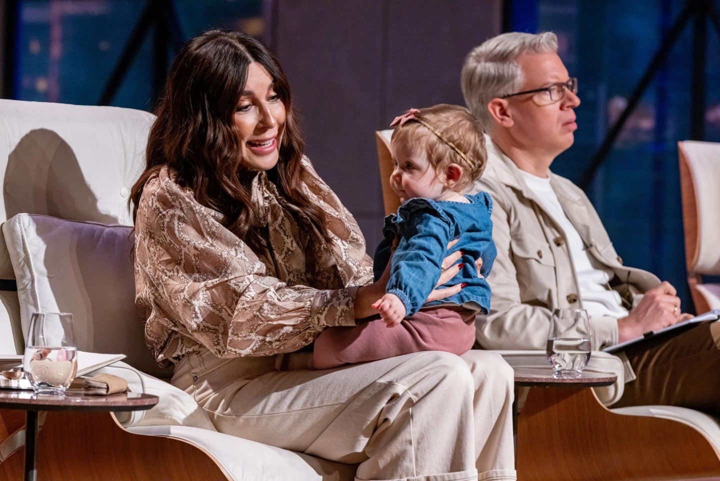 Die Löwen reagieren aufmerksam: Carsten Maschmeyer, selbst Opa von zwei kleinen Enkelinnen, bezeichnet sich augenzwinkernd als „Spezialist in diesem Bereich“. Judith Williams nimmt die kleine Noemi kurzerhand auf den Schoß und lobt die Idee als „praktische Alltagshilfe, die Eltern wirklich brauchen“.