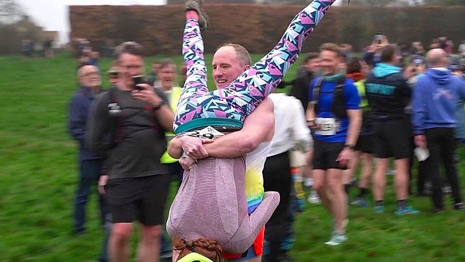 Am Sonntag trotzten in Südengland zahlreiche Teilnehmer dem trüben Wetter bei einem ganz besonderen Lauf: Zahlreiche Männer trugen ihre Partnerinnen beim jährlichen Ehefrauentragen über einen schlammigen Hindernisparcours.
