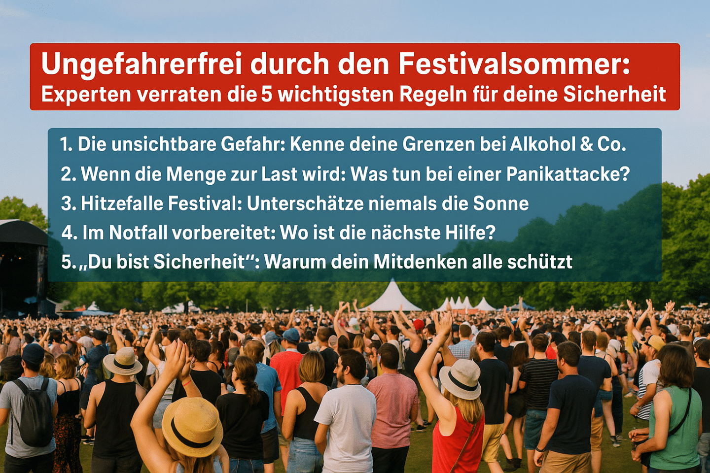 Damit du die beste Zeit deines Lebens hast, ohne deine Gesundheit zu gefährden, haben Experten des Klinikums Karlsruhe in Zusammenarbeit mit den Organisatoren von DAS FEST die entscheidenden Sicherheitstipps zusammengestellt. Diese Regeln sind nicht nur für Karlsruhe relevant, sondern dein unverzichtbarer Begleiter für jeden Festivalbesuch in diesem Sommer.