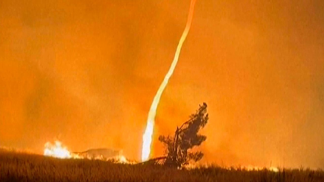 Ein Feuertornado fegt durch den Norden Portugals. Die Aufnahmen sind inmitten der verheerenden Waldbrände entstanden. Das seltene Phänomen birgt die große Gefahr, weitere Brandherde zu entfachen.