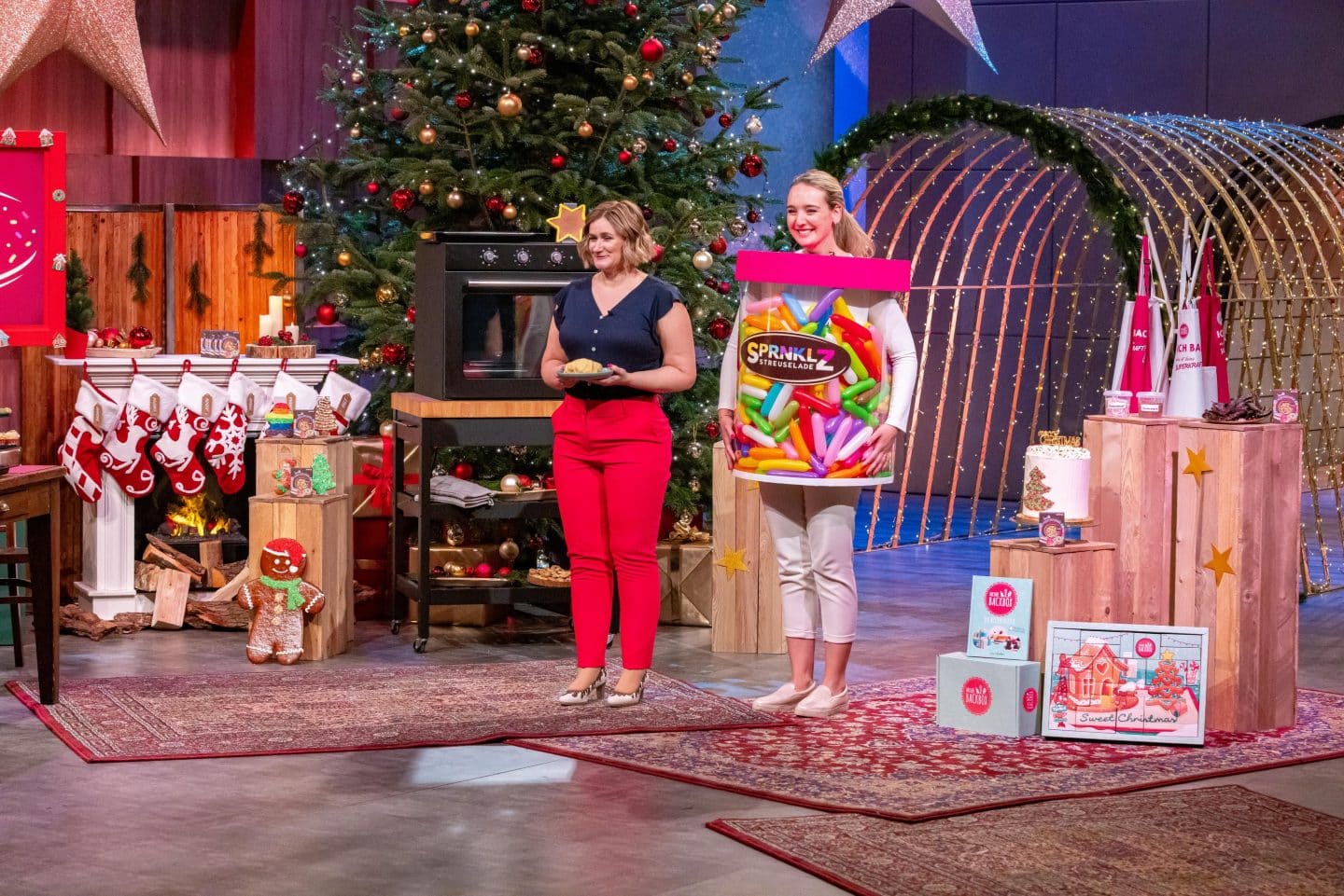 Kaum betritt Jennifer die Bühne, verwandelt sich das Studio in eine Art Weihnachtsbäckerei. Bleche, Teig, Formen – überall wird probiert, dekoriert, geknabbert. Die Löwen testen Sorten wie Winterwunder, Weihnachtsfreude, Kunterbunt, Tannenzauber und Weihnachtsglanz. Die Stimmung kippt innerhalb weniger Sekunden von neugierig zu fröhlich – selten hat ein Pitch so schnell die Löwen beschäftigt.
