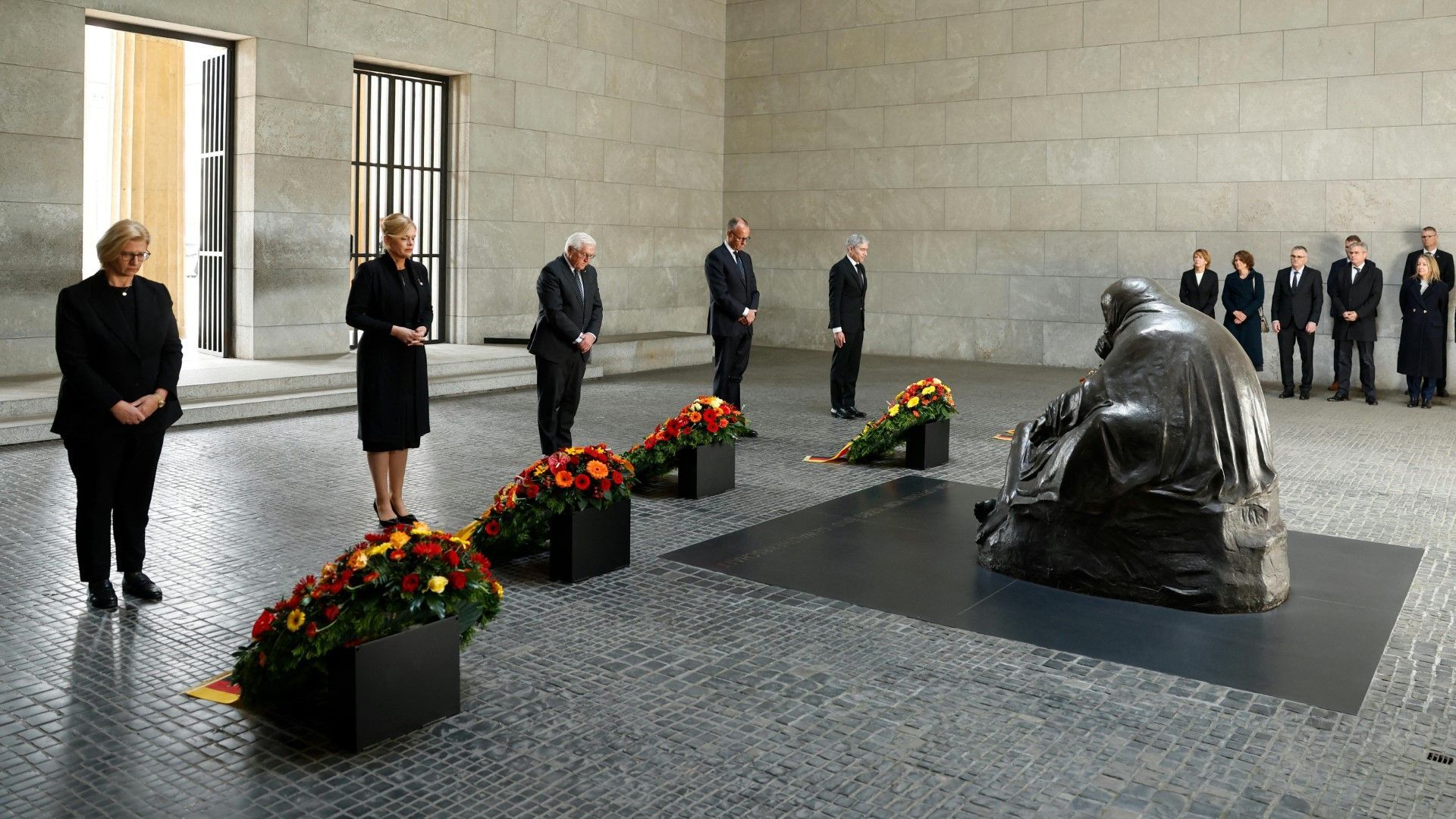 Mit einer Kranzniederlegung in Berlin haben Bundespräsident Frank-Walter Steinmeier, Bundeskanzler Friedrich Merz (CDU) und die Vertreter weiterer Verfassungsorgane der Opfer des Zweiten Weltkrieges gedacht, der in Europa vor 80 Jahren endete.