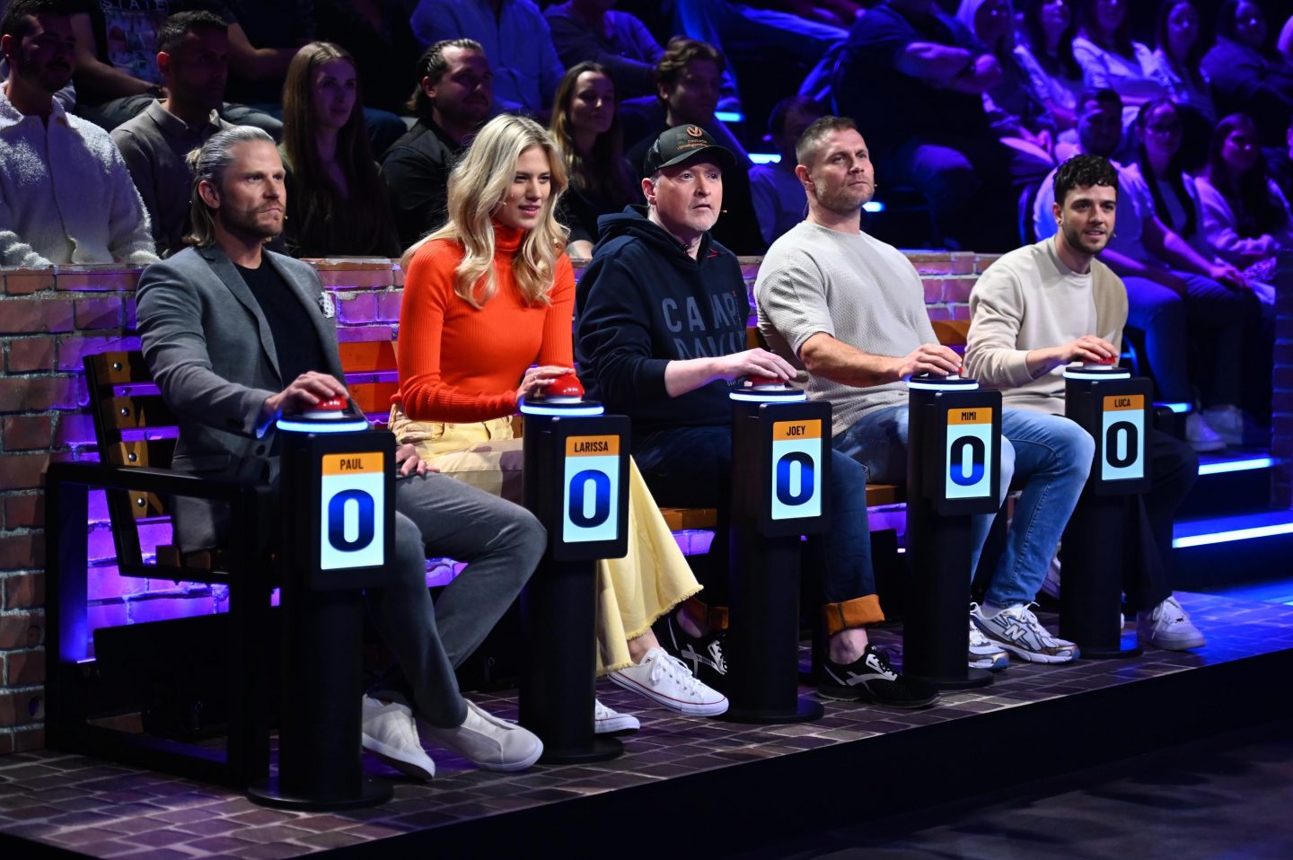 Mit dabei in der ersten Ausgabe: Joey Kelly, Mimi Kraus, Larissa Marolt, Paul Janke und Luca Hänni. Sie alle wollen Raab schlagen – doch das ist leichter gesagt als getan. Denn der Gastgeber gibt wie immer keine Punkte ab. Spielleiter ist Elton, der gewohnt charmant, aber knallhart durchs Spiel führt.