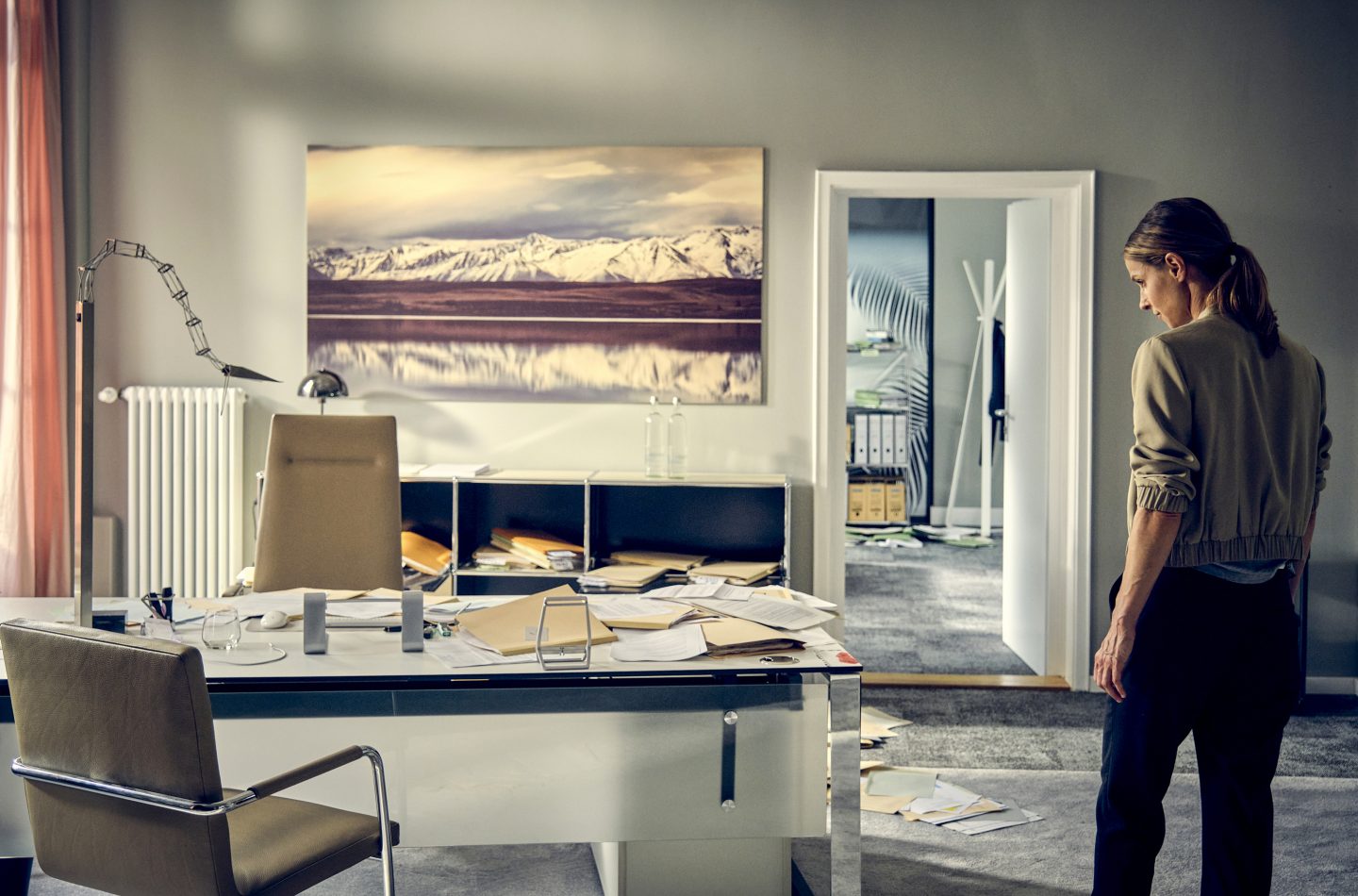 ARD/SWR TATORT: DEIN GUTES RECHT, „Fernsehfilm Deutschland 2024“, am Sonntag (27.10.24) um 20:15 Uhr im ERSTEN. Lena Odenthal (Ulrike Folkerts) ist einem Notruf gefolgt und findet einen Schwerverletzten. Aber ist noch jemand in der Kanzlei? © SWR/Benoît Linder, honorarfrei – Verwendung gemäß der AGB im engen inhaltlichen, redaktionellen Zusammenhang mit genannter SWR-Sendung und bei Nennung „Bild: SWR/Benoît Linder“ (S2). SWR Presse/Bildkommunikation, Baden-Baden, Tel: 07221/929-22202, [email protected].