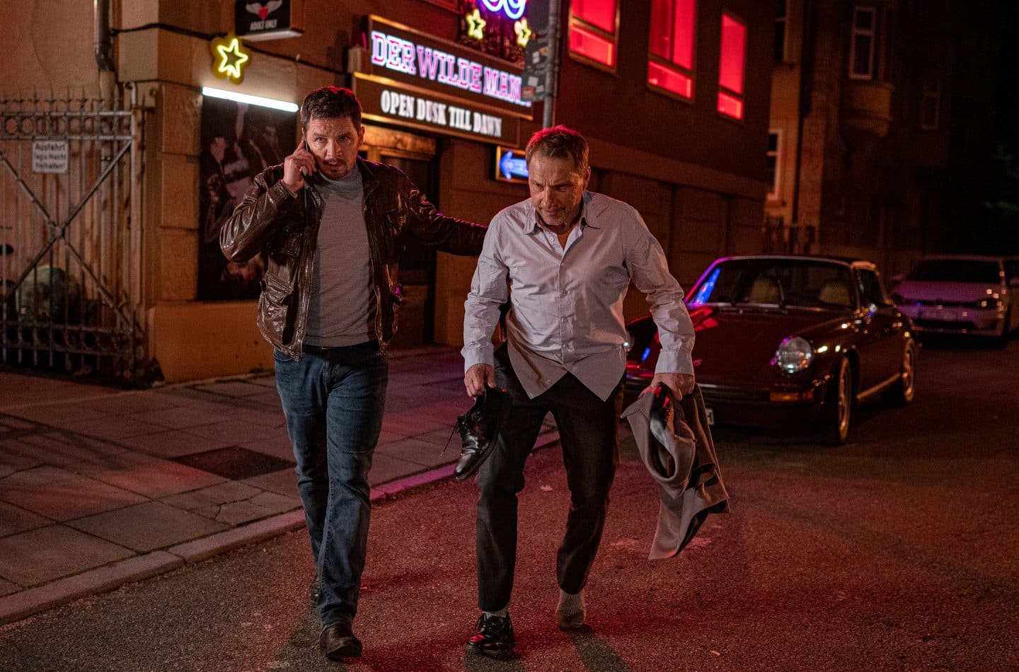 ARD/SWR TATORT: DIE NACHT DER KOMMISSARE, am Freitag (04.04.25) um 20:15 Uhr im ERSTEN. Sebastian (Felix Klare) hat Daniel Vogt (Jürgen Hartmann) zu Hilfe gerufen. Er soll Thorsten (Richy Müller) ausnüchtern, damit sich dieser wieder erinnert, was er über den Drogendeal weiß, der in dieser Nacht steigen soll. © SWR/Christian Koch, honorarfrei – Verwendung gemäß der AGB im engen inhaltlichen, redaktionellen Zusammenhang mit genannter SWR-Sendung bei Nennung „Bild: SWR/Christian Koch“ (S2+). SWR Presse/Bildkommunikation, Baden-Baden, Tel: 07221/929-22202, [email protected]