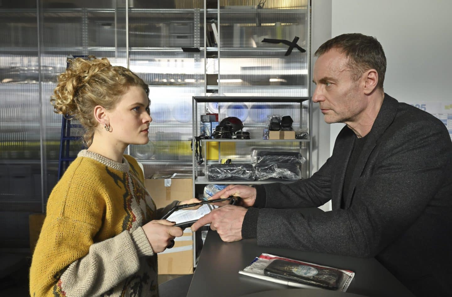 Als Bonard und Karow die Sicherheitsmitarbeiterin Annika Haupt (Annett Sawallisch) befragen, zeigt sich: Sie war die Geliebte des Opfers. Doch sie bestreitet jede Verbindung zu kriminellen Aktivitäten. „Tomás war freundlich, er wollte einfach nur ein besseres Leben“, sagt sie – und wirkt dabei glaubwürdig. Trotzdem bleibt der Verdacht: Könnte er etwas aus der Bundesdruckerei geschmuggelt haben?