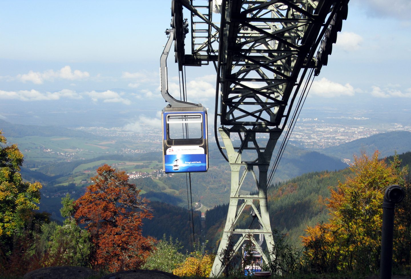 Die Schauinslandbahn wurde bereits 1930 eröffnet und ist bis heute ein technisches Meisterwerk. Mit einer Länge von 3.600 Metern ist sie die längste nach dem Umlaufprinzip konzipierte Seilbahn Deutschlands – und war weltweit die erste dieser Bauart zur Personenbeförderung. Sie überwindet 746 Höhenmeter und bringt Ausflügler in rund 20 Minuten vom Talort Horben auf den 1.284 Meter hohen Freiburger Hausberg Schauinsland.