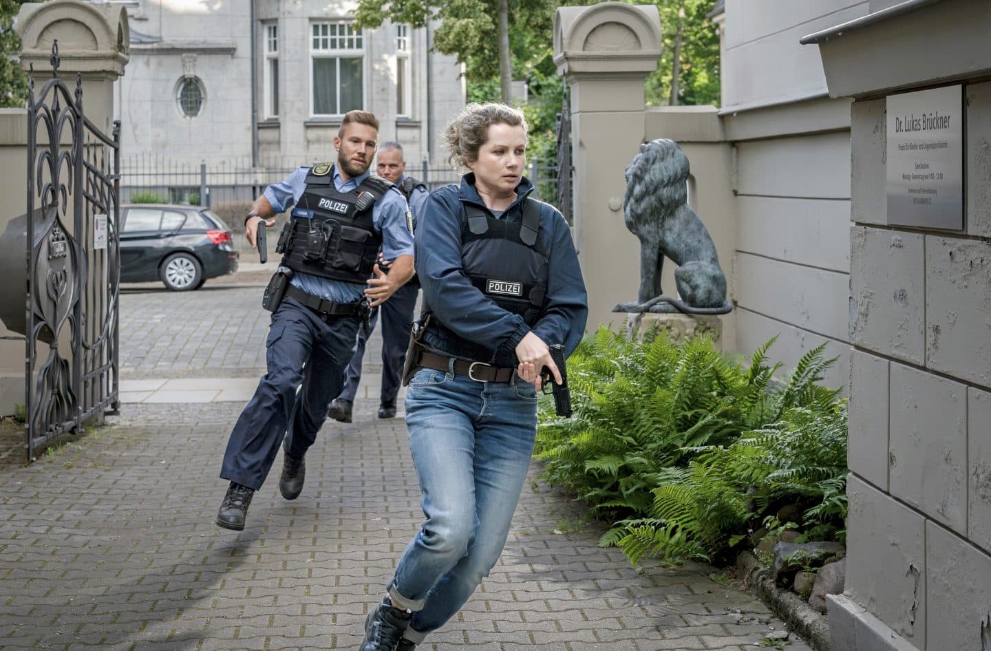 ARD/MDR TATORT: SIEBENSCHLÄFER, am Sonntag (12.10.25) um 20:15 Uhr im ERSTEN. Leonie Winkler (Cornelia Gröschel) erreicht die Praxis von dem Kinderpsychologen Michael Brückner, es droht Gefahr. © MDR/MadeFor Film/Steffen Junghans, honorarfrei – Verwendung gemäß der AGB im engen inhaltlichen, redaktionellen Zusammenhang mit genannter MDR-Sendung bei Nennung „Bild: MDR/MadeFor Film/Steffen Junghans“ (S2+). MDR/HA Kommunikation, 04360 Leipzig, Tel: (0341) 300 6477 oder – 6463