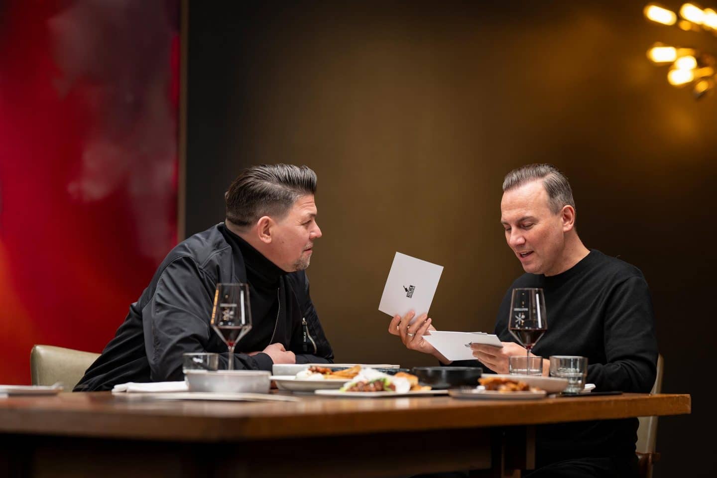Tim Mälzer (l.), Tim Raue+++ Die Verwendung des sendungsbezogenen Materials ist nur mit dem Hinweis und Verlinkung auf RTL+ gestattet. +++