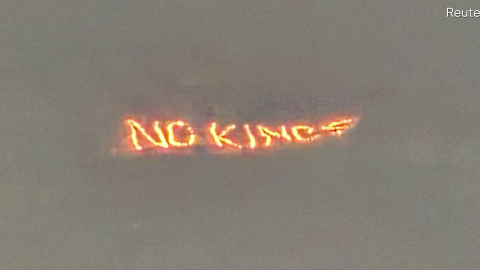 In der Nacht vom 20. Januar vor dem Eintreffen von US-Präsident Donald Trump in Davos erhellte ein auffälliges Protest-Schild den Himmel über dem Schweizer Wintersportort.