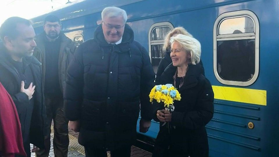 EU-Kommissionspräsidentin Ursula von der Leyen ist am vierten Jahrestag des Beginns des Ukraine-Krieges in dem von Russland angegriffenen Land eingetroffen.