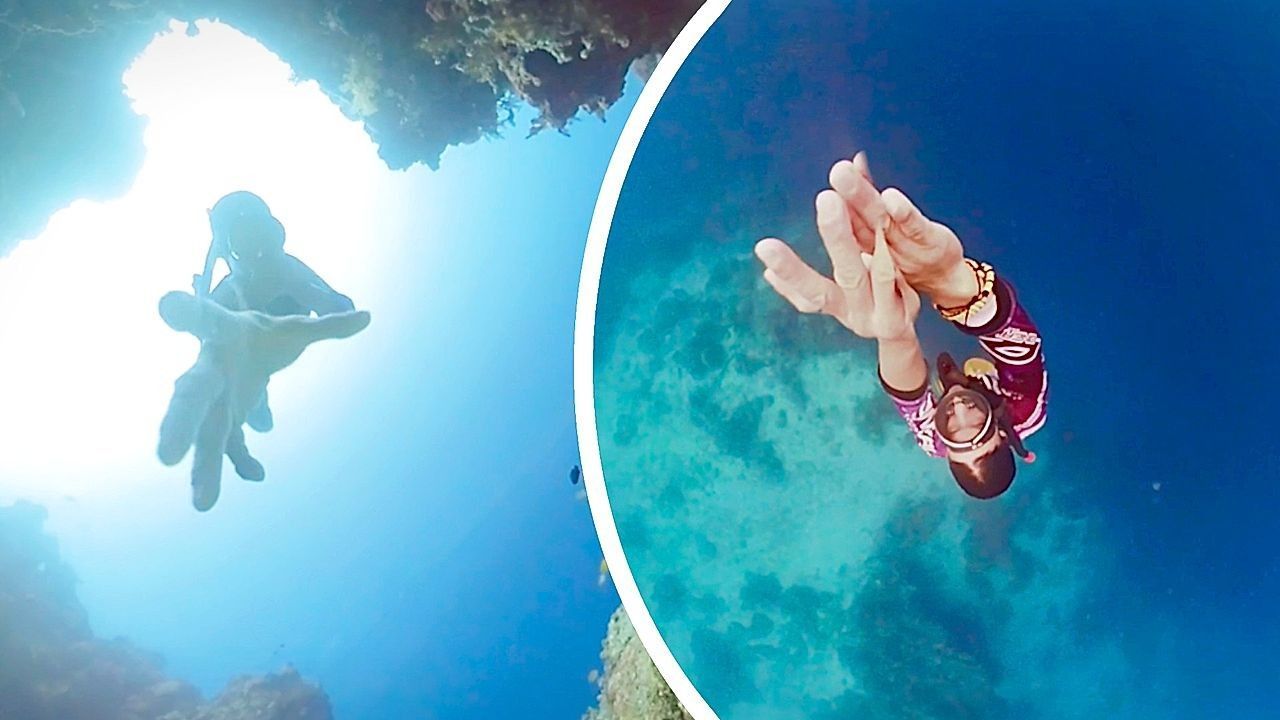 Vor Mantigue Island auf den Philippinen ließ ein Urlauber seine Kamera im Meer fallen. Das Gerät filmte den Sturz bis in 30 Meter Tiefe. Ein erfahrener Tourguide tauchte ab.