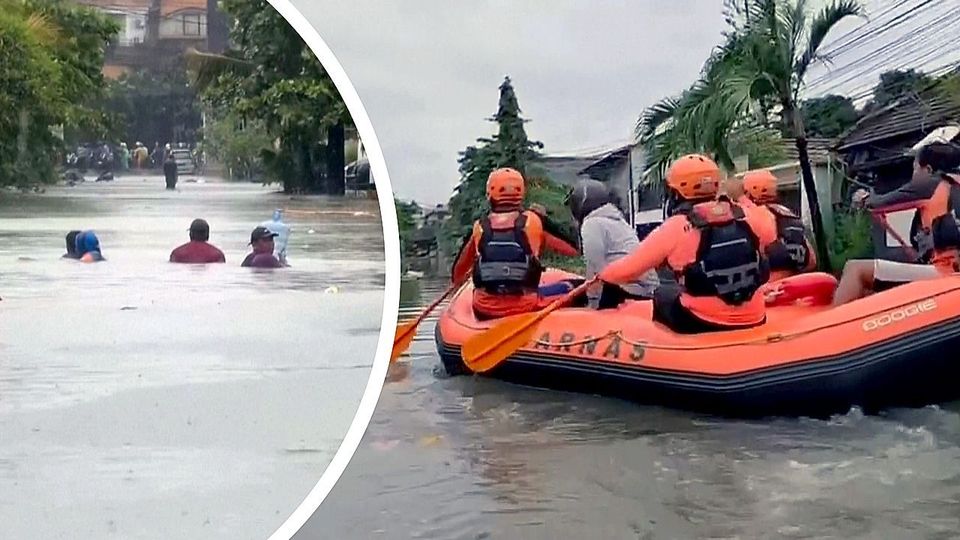Auf der beliebten Urlaubsinsel Bali herrscht Chaos. Nach heftigen Regenfällen in den vergangenen Tagen steht das Wasser kniehoch in den Straßen. Hunderte Menschen mussten evakuiert werden.