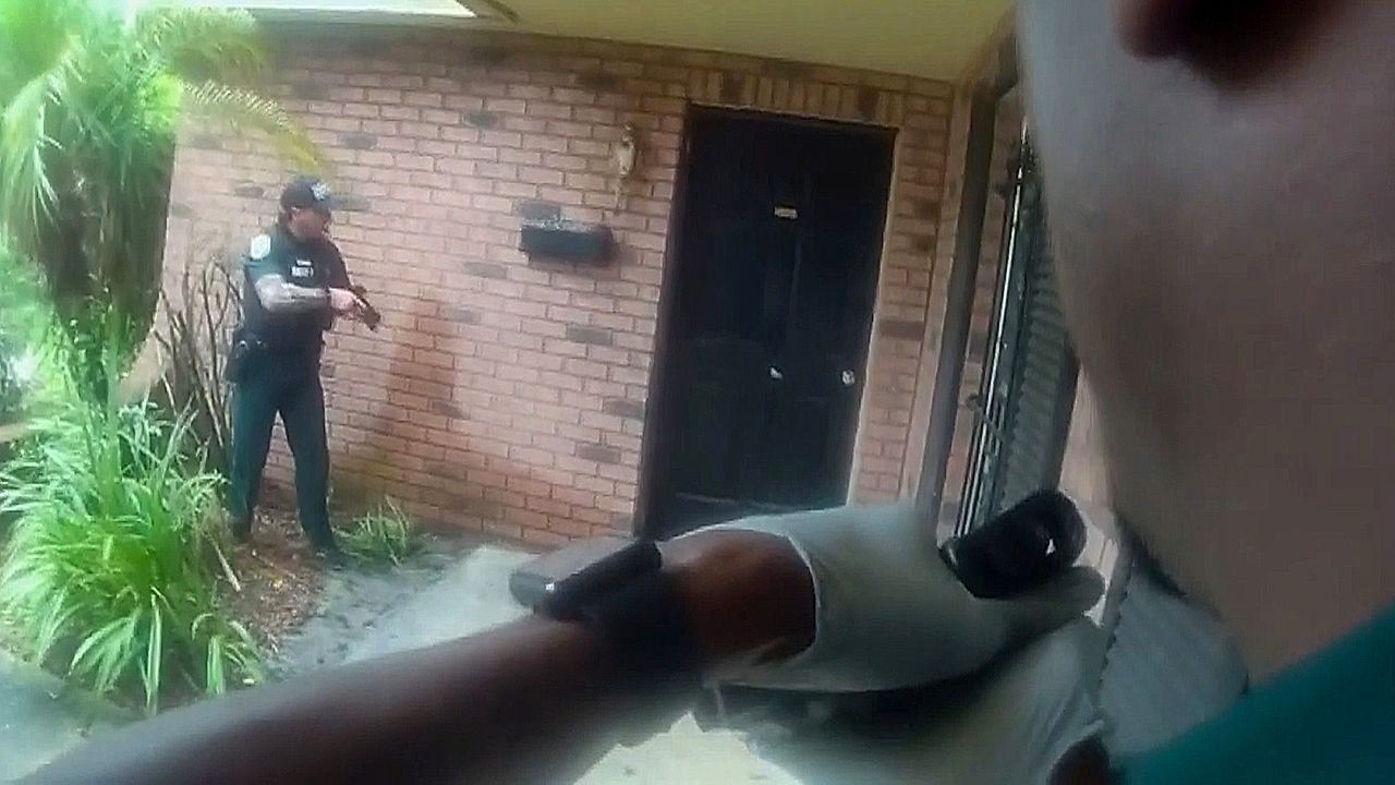 Ein Polizeieinsatz in Pine Hills im US-Bundesstaat Florida endete beinahe tragisch. Polizisten umstellten nach einem Einbruch ein Haus. Als der Besitzer die Tür öffnete, fiel plötzlich ein Schuss.