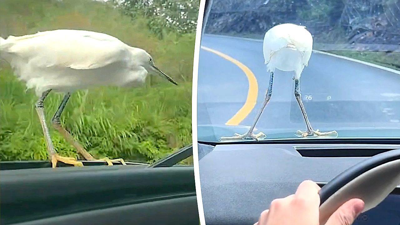 Ein Autofahrer in der chinesischen Provinz Jiangxi machte Bekanntschaft mit einem tierischen Anhalter: Ein cleverer Reiher fuhr 15 Kilometer lang auf der Motorhaube mit.