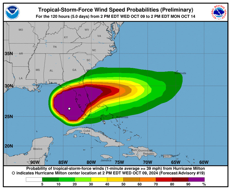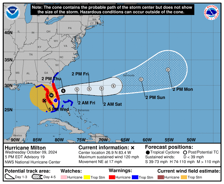 Miltons Windfeld, das tropische Sturmwinde von 63 km/h oder mehr umfasst, hat sich seit gestern mehr als verdoppelt und erstreckt sich aktuell über unglaubliche 480 km! Ursprünglich erreichte Milton Windgeschwindigkeiten von bis zu 250 km/h, bevor er auf 201 km/h herabgestuft wurde. Doch die Gefahr bleibt! CNN-Meteorologin Mary Gilbert warnt: „Die Auswirkungen des Hurrikans werden durch die Kategorieänderung nicht geringer.“ Bewohner müssen sich auf schwere Verwüstungen einstellen – Sturmschäden, Überschwemmungen und Stromausfälle drohen.