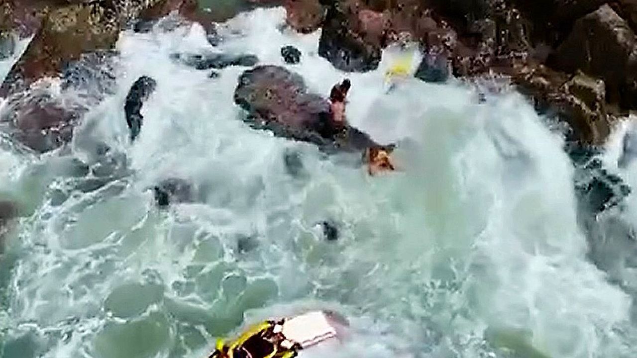 Zu einer dramatischen Rettungsaktion kam es am Wochenende in der brasilianischen Stadt Guarujá. Ein Mädchen war beim Baden am Strand von einer starken Strömung ins Meer getrieben worden. Inmitten heftiger Brandung mussten Retter die bewusstlose Zehnjährige von Klippen bergen.