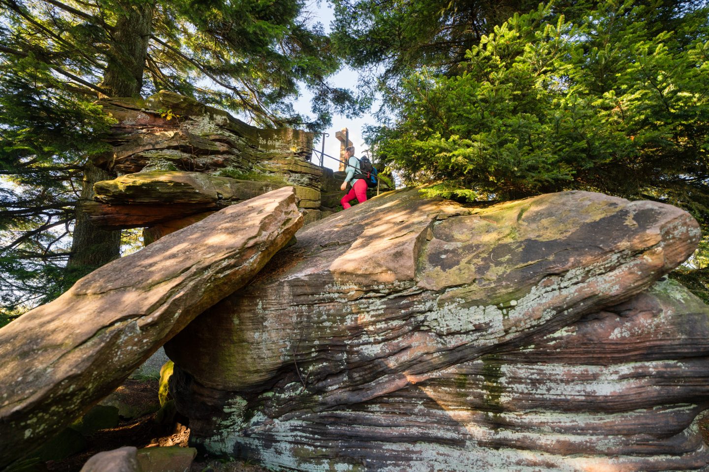 Ein Highlight der Wanderung ist der Bernsteinfelsen. Von hier aus öffnet sich ein spektakulärer Blick bis in die Vogesen. Auch die Aussicht am Drachenfliegerplatz ist beeindruckend – mit etwas Glück kann man sogar Gleitschirmflieger beim Start beobachten.