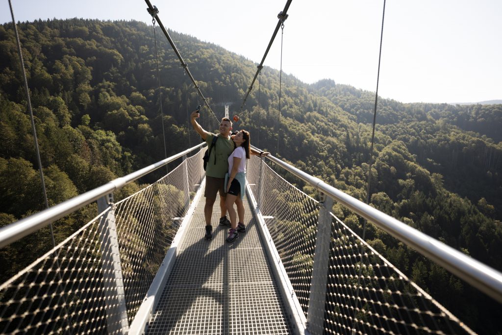Couple taking a selfie on the suspension bridge Blackforestline