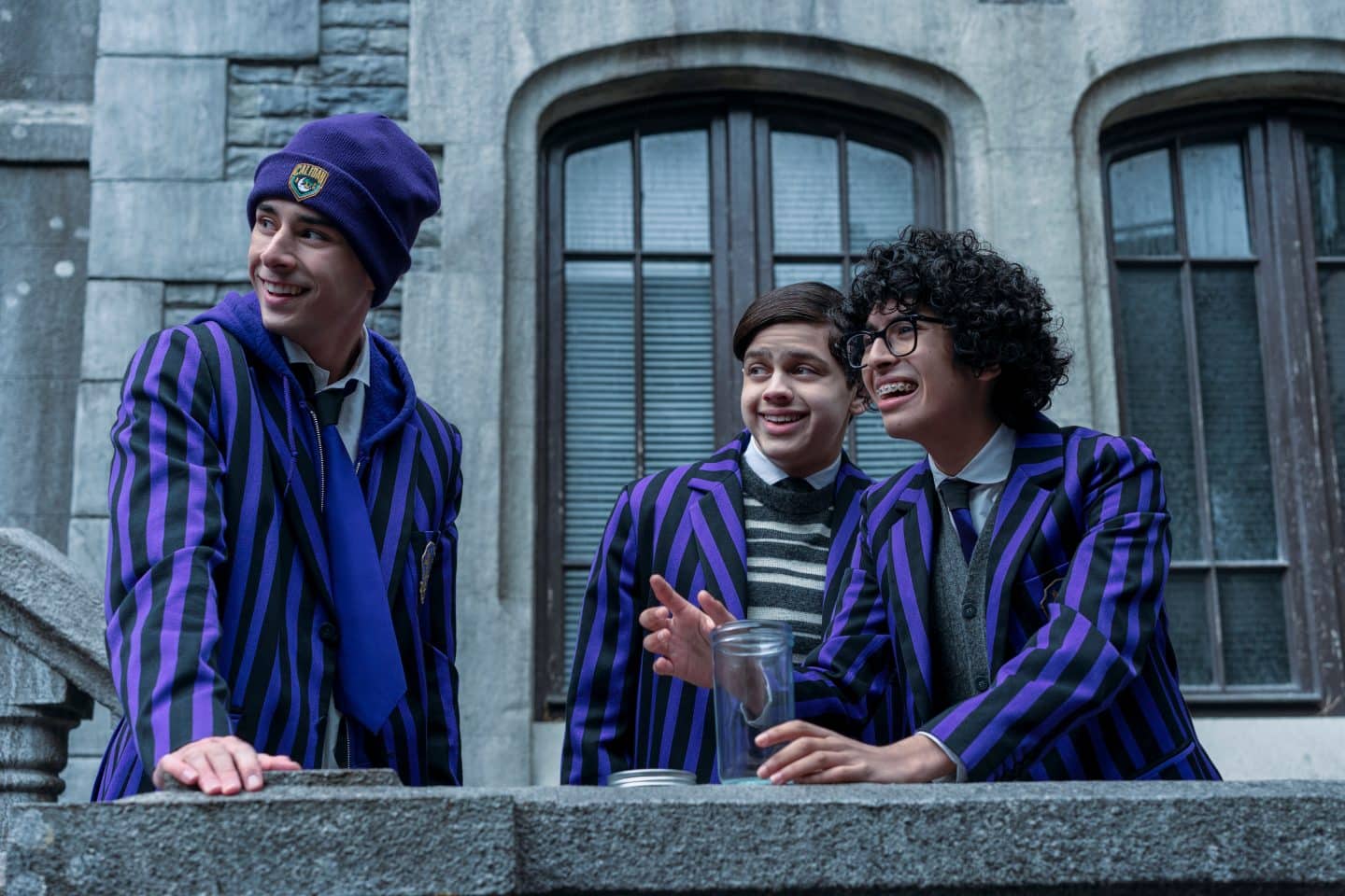 Wednesday. (L to R) Georgie Farmer as Ajax, Isaac Ordonez as Pugsley Addams, Moosa Mostafa as Eugene in episode 202 of Wednesday. Cr. Jonathan Hession/Netflix © 2025