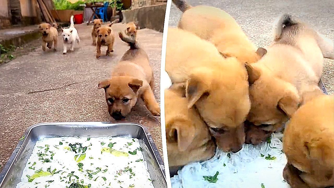 Sechs süße Welpen begeistern derzeit das Internet. Ein Video der kleinen Hunde aus der chinesischen Region Guangxi ging Anfang September viral. Die Vierbeiner liefern sich darauf ein Wettrennen um den besten Platz an der Futterschüssel.