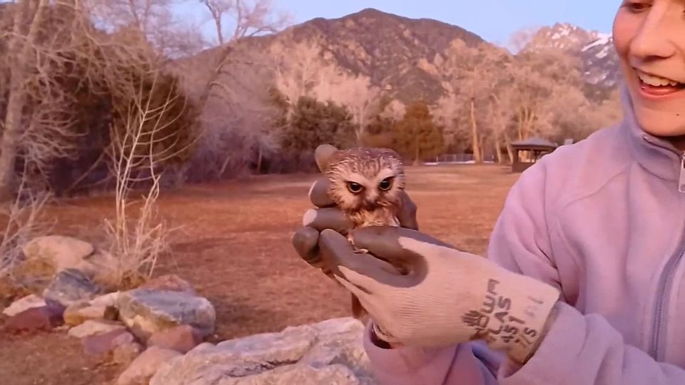 Rührende Bilder der Wildtierbehörde in Del Norte im US-Bundesstaat Colorado: Nach einer Flügelverletzung und monatelanger Pflege konnte ein Sägekauz endlich wieder gesund in die Wildnis entlassen werden.