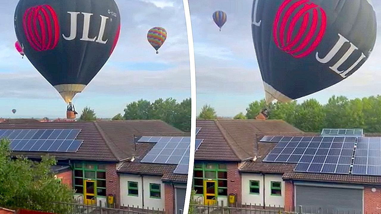 Zu dramatischen Sekunden kam es am Freitag bei einem Heißluftballonfestival im englischen Bristol. Ein Luftfahrzeug steuerte den Landeplatz zu tief an und krachte in das Dach einer Schule. Der Korb drohte umzukippen. Die Ballonfahrer bannten die Gefahr, indem sie den Brenner zündeten.